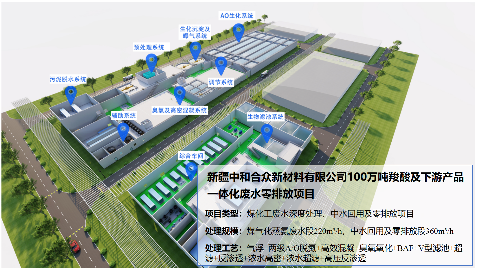 近日,yl23455永利集团成功签署了新疆中和合众新材料有限公司100万吨羧酸及下游产品一体化废水零排放项目。该项目涉及煤气化蒸氨废水处理和中水回用及零排放处理。煤气化蒸氨废水段的设计处理能力为220m³/h,中水回用及零排放段的设计处理能力为360m³/h。产水水质满足《城市污水再生利用-工业用水水质》(GB/T 19923-2005)中锅炉补给水水质标准。